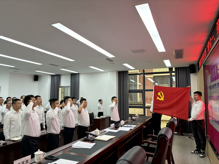 6月27日上午,活動在莊嚴的國歌聲中開始。公司黨支部書記、董事長袁波同志帶領全體黨員重溫入黨誓詞。面對鮮紅的黨旗,大家一起回憶入黨時那激昂的心,初心使命歷久彌堅。
