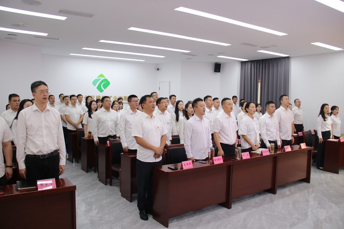 9時(shí)許,莊嚴(yán)的國歌聲響起,全體員工起立,行注目禮,仿佛置身于天安門廣場,與全國人民一同感受這一神圣時(shí)刻。