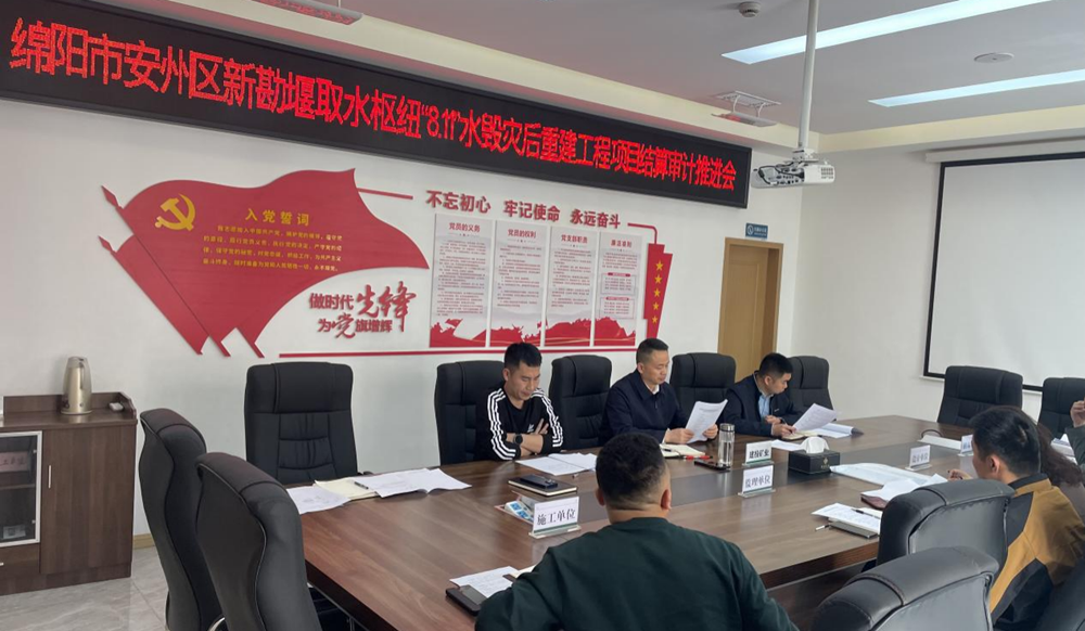 4月7日,公司組織召開(kāi)綿陽(yáng)市安州區(qū)新堪堰取水樞紐“8.11”水毀災(zāi)后重建工程項(xiàng)目結(jié)算審計(jì)推進(jìn)會(huì)。(素材來(lái)源:工程項(xiàng)目部 辛佳洋)